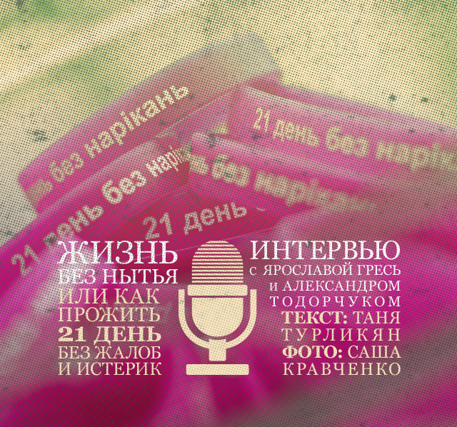 | Ярослава: Точно помню, что продержалась первые 3,5 дня, после чего сорвалась. У Саши получатся держаться дольше, так как он не так много разговаривает, как я :) А вообще, нам уже кто-то говорил, что акцию нужно было назвать «221 день без нарікань», потому что сходу практически ни у кого не получается продержаться ровно 21 день без жалоб. Саша: Так, ми й самі інколи жартуємо, що наш «21 день» експерименту закінчиться, скоріш за все, коли ми вийдемо на пенсію. | ||||