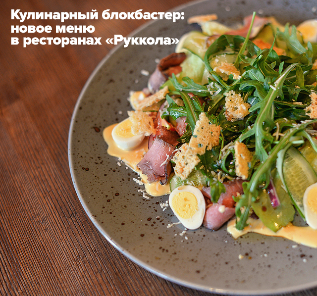 В меню "Рукколы" появилось блюдо с пастой Орзо, говяжьи ребра, равиоли с кроликом, салат с козьим сыром и многие другие вариации с уже знакомыми продуктами. 80% из них – новые предложения от ресторана.