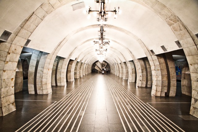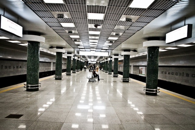 3) «Голосеевская» - еще одна новая станция. Выбираем за неиспорченную красоту, колонны и держатели: