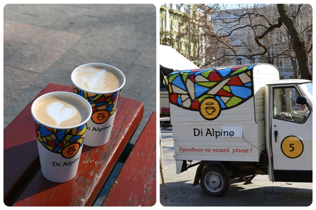 Если увидите яркую машинку с надписью Di Alpino – смело идите за кофе к ней. Там обещают праздник на нашей улице. Вкусное капуччино и свежий воздух в парке – лучшее сочетание в любое время года.