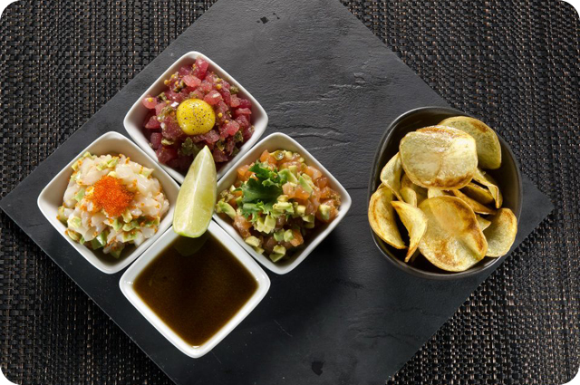 В ресторане есть RAW BAR, WOK и именные стейки.
