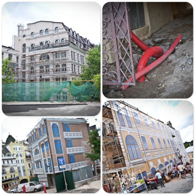Некоторые исторические дома на спуске тоже были в аварийном состоянии. Часть из них отремонтировали, часть - вовсе снесли, и вскоре построят на этом месте их реконструированных близнецов.
