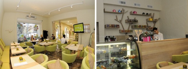 В центре города находится маленькая обитель спокойствия и чистоты. Здесь органично все: еда, интерьер и даже музыка. Интерьер кафе, мебель и освещение спроектированы ведущими дизайнерами и изготовлены из экологически безопасных материалов, цветовая гамма бело-салатовая, что подчеркивает направленность кафе.