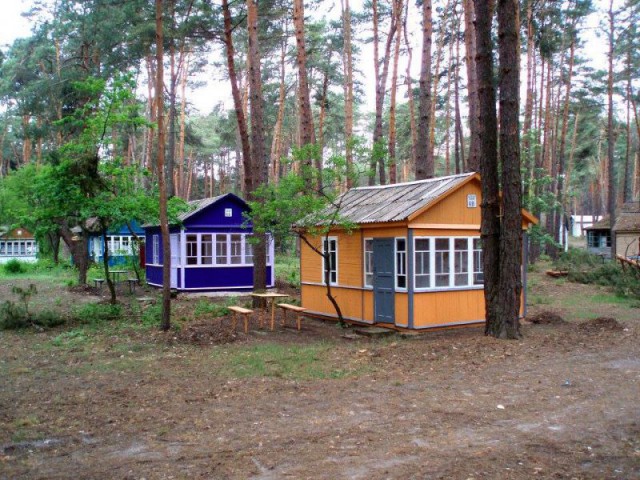 Ищете базы отдыха возле воды в Киевской области? Вот база советского образца, но с демократичными ценами. Есть как домики повышенной комфортности, со своей мини-кухней, так и жилье с «удобствами» на территории. Турбаза находится в сосновом бору у залива Десны. Есть магазин, еще продукты можно покупать у местных жителей.