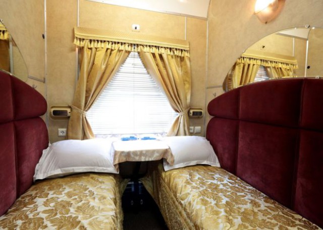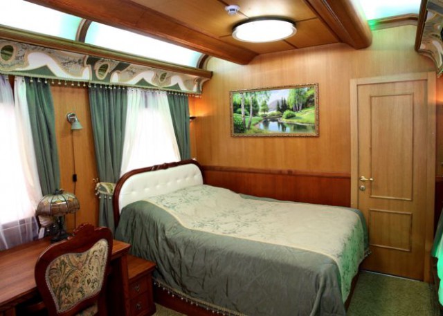 В обычной железнодорожной кассе купить билет на путешествие в таком вагоне не получится. Их заказывают заранее через письменную заявку. В вагоне-салоне есть зал, спальня, кабинет, кухня, душ и туалет. Также есть отдельное купе для расчета и охраны.