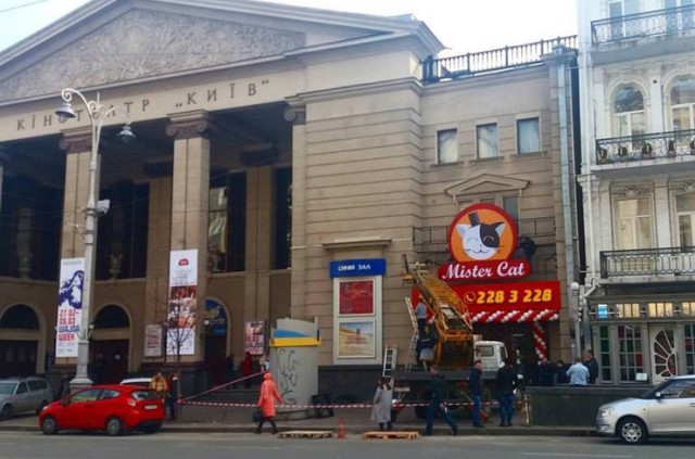 В столице разгорелся скандал из-за вывески пиццерии, открывшейся в центре города по ул. Большой Васильковской, 19, - в районе пл. Льва Толстого. Огромный логотип новой пиццерии в ярких красно-желтых цветах установили на фасаде старинного здания кинотеатра "Киев". Об этом пишет "Сегодня".