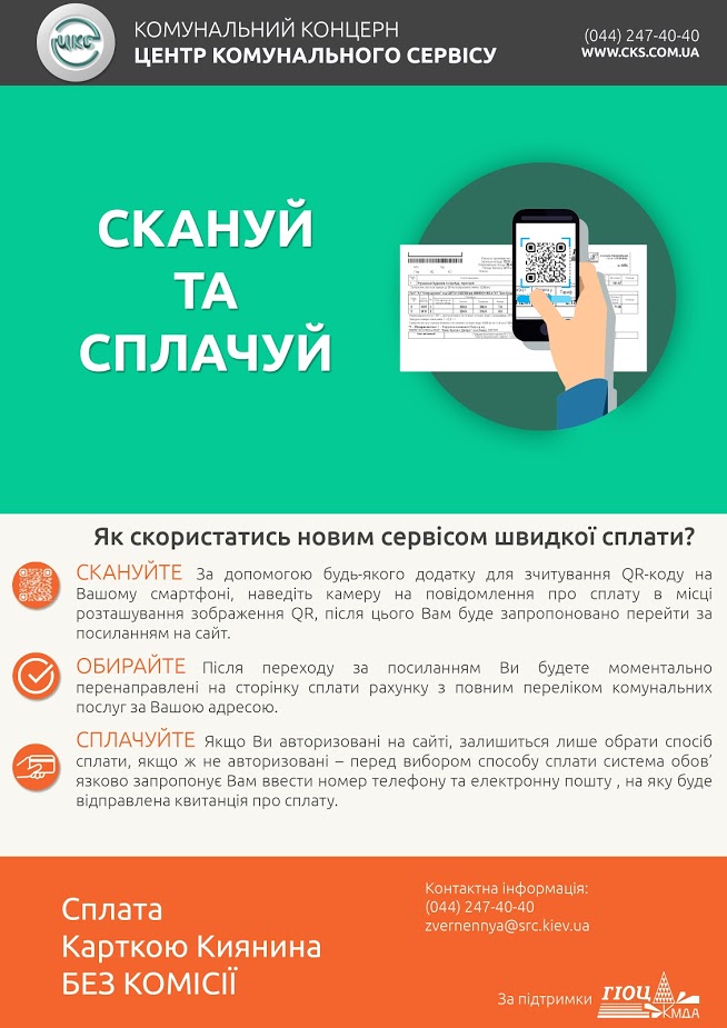 Коммунальные услуги теперь можно оплатить с помощью смартфона и специальной программы для чтения QR-кода. Об этом сообщает Коммунальный концерн «Центр коммунального сервиса».