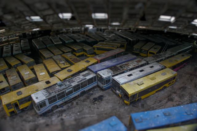 "Кладбище" изношенного гортранспорта находится в Дарницком районе, на ул. Бориспольской, в автопарке №7. Но туда уже долгое время никого не пускают из-за аварийности помещения. Лишь изредка столичным экстремалам удается проникнуть на его территорию. Автопарк №7 был построен в 1973 году. И его еще тогда сравнивали с летающей тарелкой или цирковым шатром из-за необычной формы.