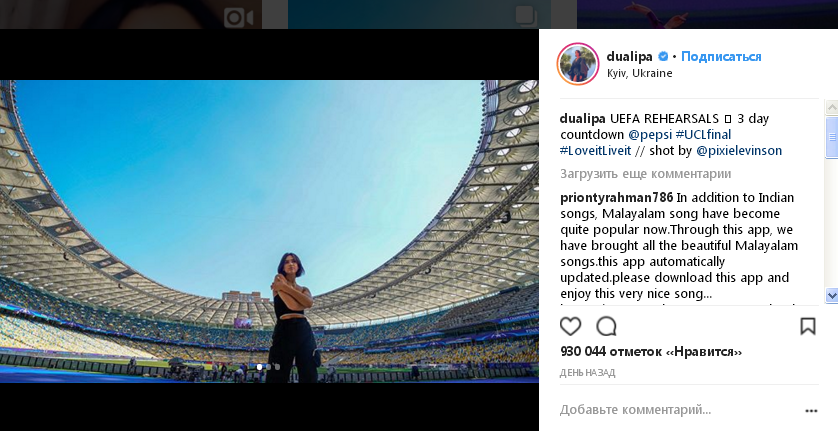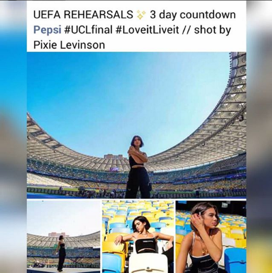 Певица уже ознакомилась с "Олимпийским", где ей предстоит выступить в субботу. Вместе с британкой на арене был замечен известный хорватский виолончелист Степан Хаусер, участник дуэта 2Cellos. Они и DJ Hardwell также примут участие в открытии финала Лиги чемпионов.
