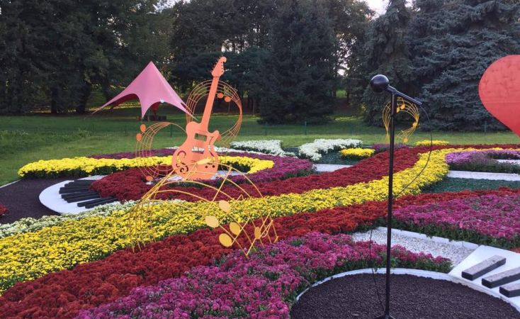 Дизайнеры десяти районных коммунальных предприятий по содержанию зеленых насаждений превратили хризантемы в яркие ноты, которые воплотятся в музыкальные жанры.