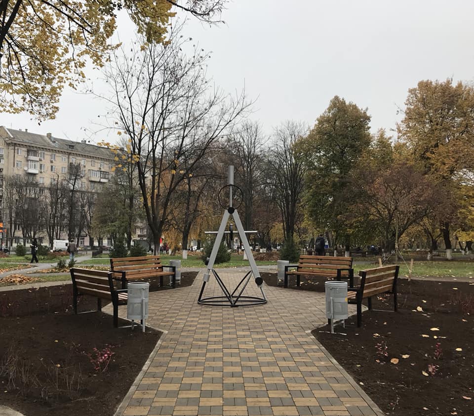 Новый арт-объект в виде циркуля появился в Соломенском районе столицы на Воздухофлотском проспекте, где ранее были демонтированы МАФы.