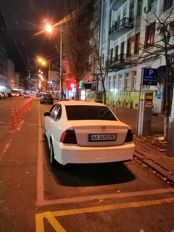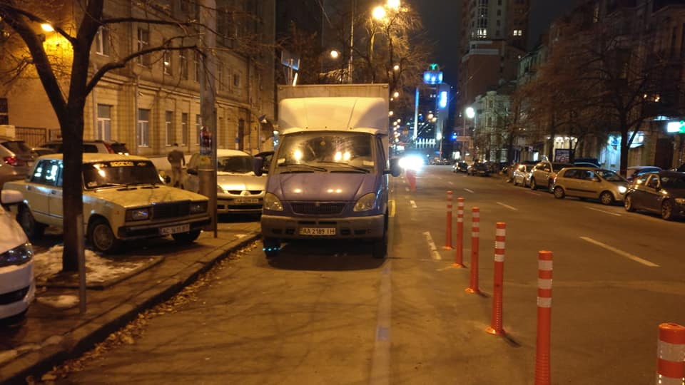 "На Шота Руставели отделили полосу общественного транспорта. Круто, правда же? Только общественный транспорт по прежнему ездит в оставшихся двух полосах, потому как даже одна машина, припаркованная на полосе - рушит всю концепцию. А их я насчитал 12. И это только на том участке, который я проезжал", - написал киевлянин.