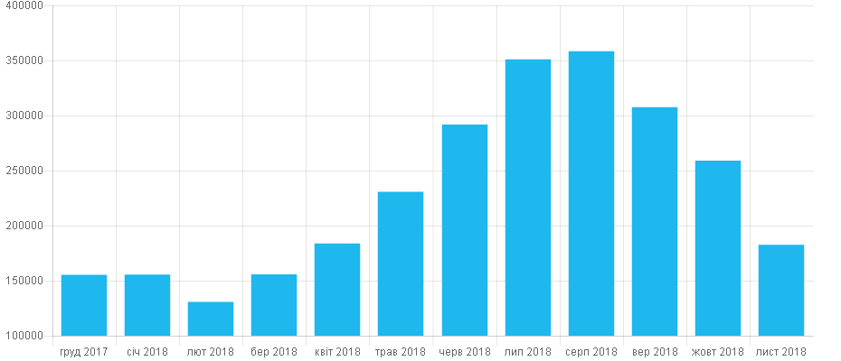 За ноября 2018 году "Киев" им. Игоря Сикорского обслужил 182 500 пассажиров, что на 25,3% больше, чем за ноябре прошлого года. Из этого числа 176 000 пассажиров - на международных рейсах и 6,5 тыс. - на внутренних.