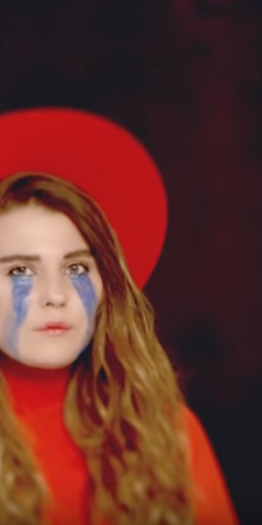 Аудиоверсия новой песни группы сопровождается видеорядом, на котором солистка Александра Зарицкая предстает перед камерой в стильном красном наряде и шляпке. На лице певицы нарисованы синие следы от слез.
