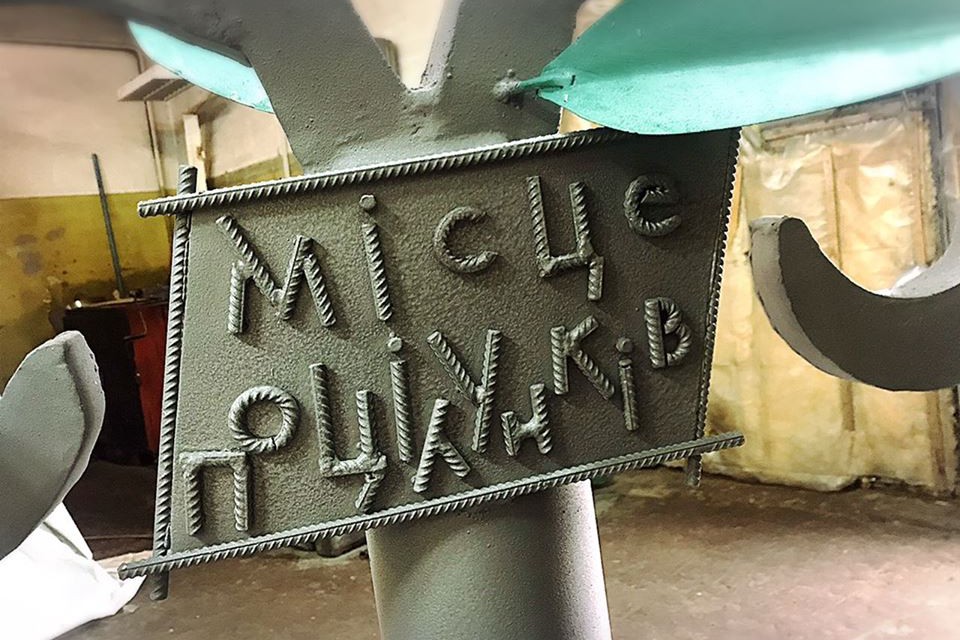 Новая инсталляция представляет собой стилизованное дерево из металла и деревянных элементов. Высота композиции будет около 2,5 метров, а ширина - 3,3 метра. Работы над ее созданием продолжались почти месяц.