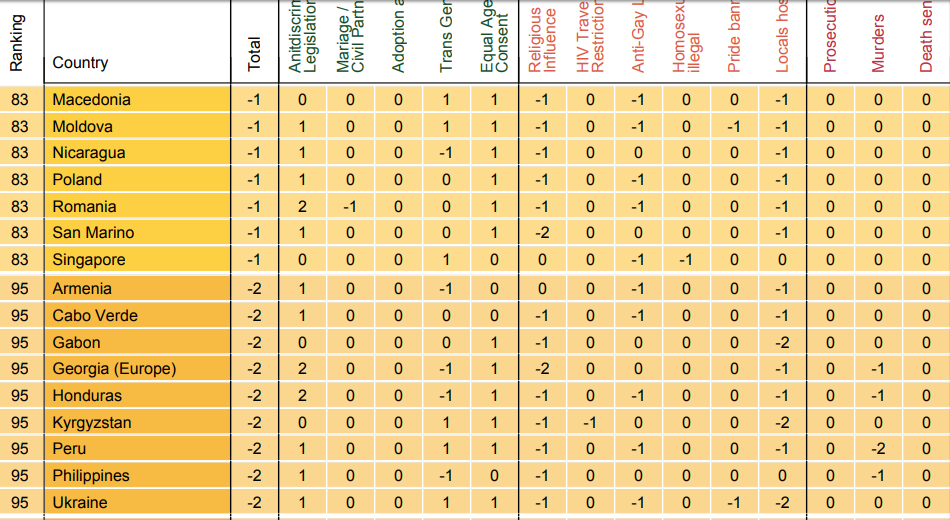 А вот США и Бразилия в этом году опустились в рейтинге из-за инициатив правых консервативных правительств по ограничению прав ЛГБТ.