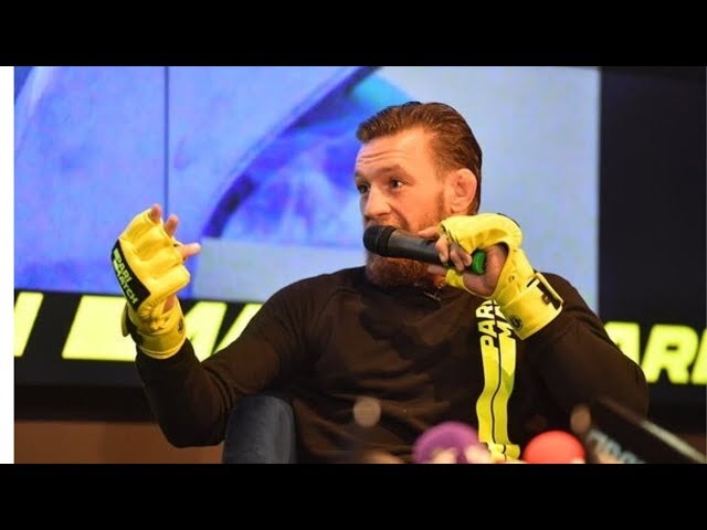 Конор дал пресс-конференцию в КВЦ «Парковый» и оставил автограф на стене бойцовских перчаток.