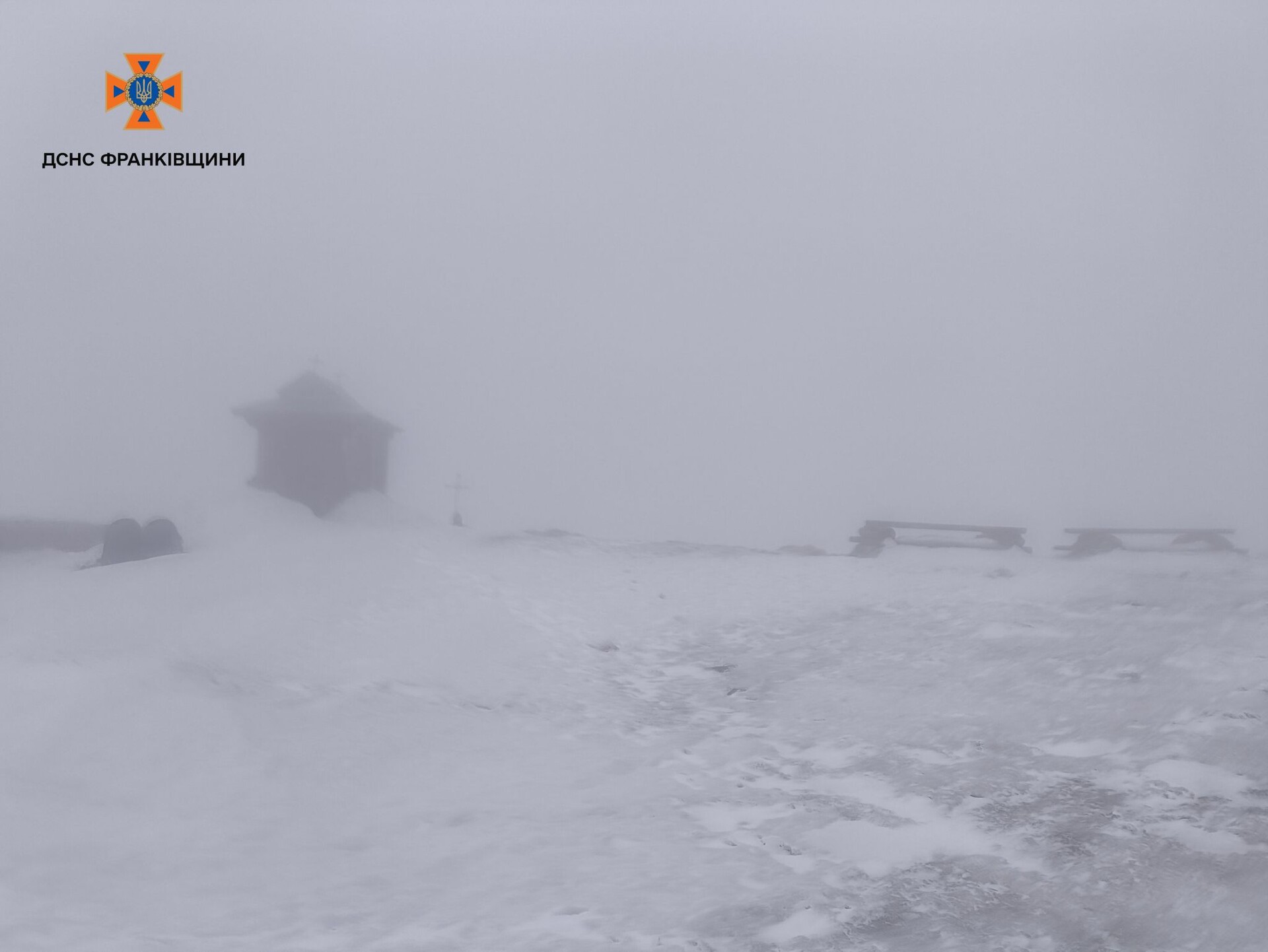"На вершине Поп Иван Черногорский сегодня не до весенних прогулок: густой туман окутывает гору, северный ветер разгоняется до 8 м/с, а температура опускается до -8°C. И да – там сейчас идет снег", – рассказали в ГСЧС Украины.