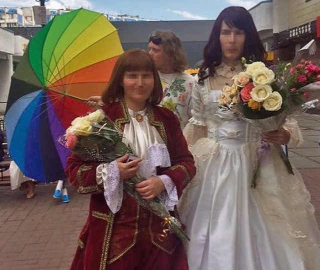 Как рассказали Вестям знакомые супругов, присутствовавшие на этом бракосочетании, заявление пара подавала заблаговременно: «Ближе к дате, так как они оба нетрадиционной ориентации, решили одеться каждый согласно своей роли в семье. Кроме того, хотелось посмотреть на реакцию сотрудников ЗАГСа».