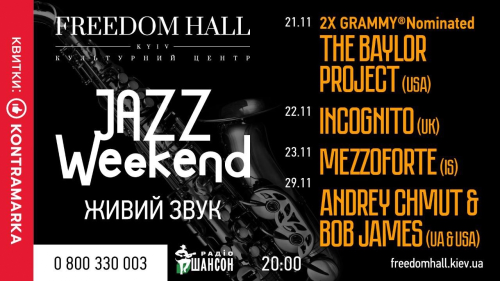 Любителей даза ждет Jazz Weekend с участием мировых джазовых звезд. Здесь выступят не только знаменитые музыканты, но и новые американские звезды, номинанты на Grammy. Аутентичный американский семейный джазовый коллектив The Baylor Project, легендарный проект Incognito, одна из самых старых европейских джазовых групп Mezzoforte из Исландии и многие-многие другие.