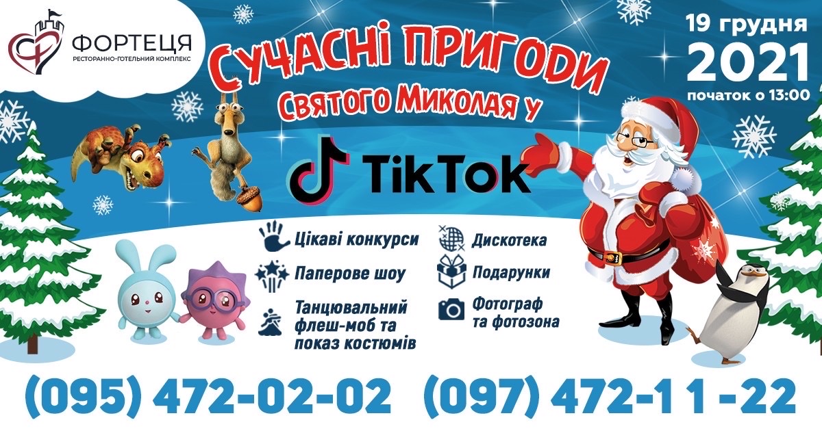 Святой Николай бывает современным. Вас ждет яркое представление для детей, главные герои которого отправятся в новогоднюю страну Тик Ток. Это история про чудеса, веселые приключения и поиски праздничного настроение. В программе также: дискотека, фотограф и фотозоны, конкурсы и подарки, а также бумажное шоу. Детали трендового мероприятия можно узнать по номерам: 095 472 02 02, 097 472 11 22.