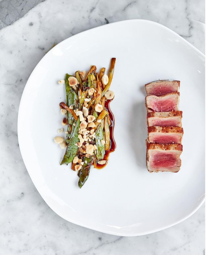 - стейк из мраморного сома с печеными овощами - 315 гривен