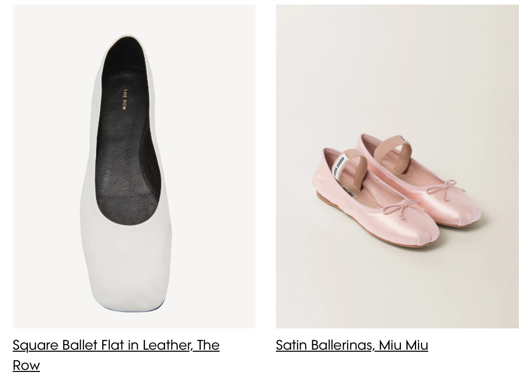 Надежные и удобные. Предпочитаете ли вы минимализм The Row или девичий блеск Miu Miu, эти балетки являются выигрышным вариантом, обуваете ли вы их к длинному платью или мини-юбке.
