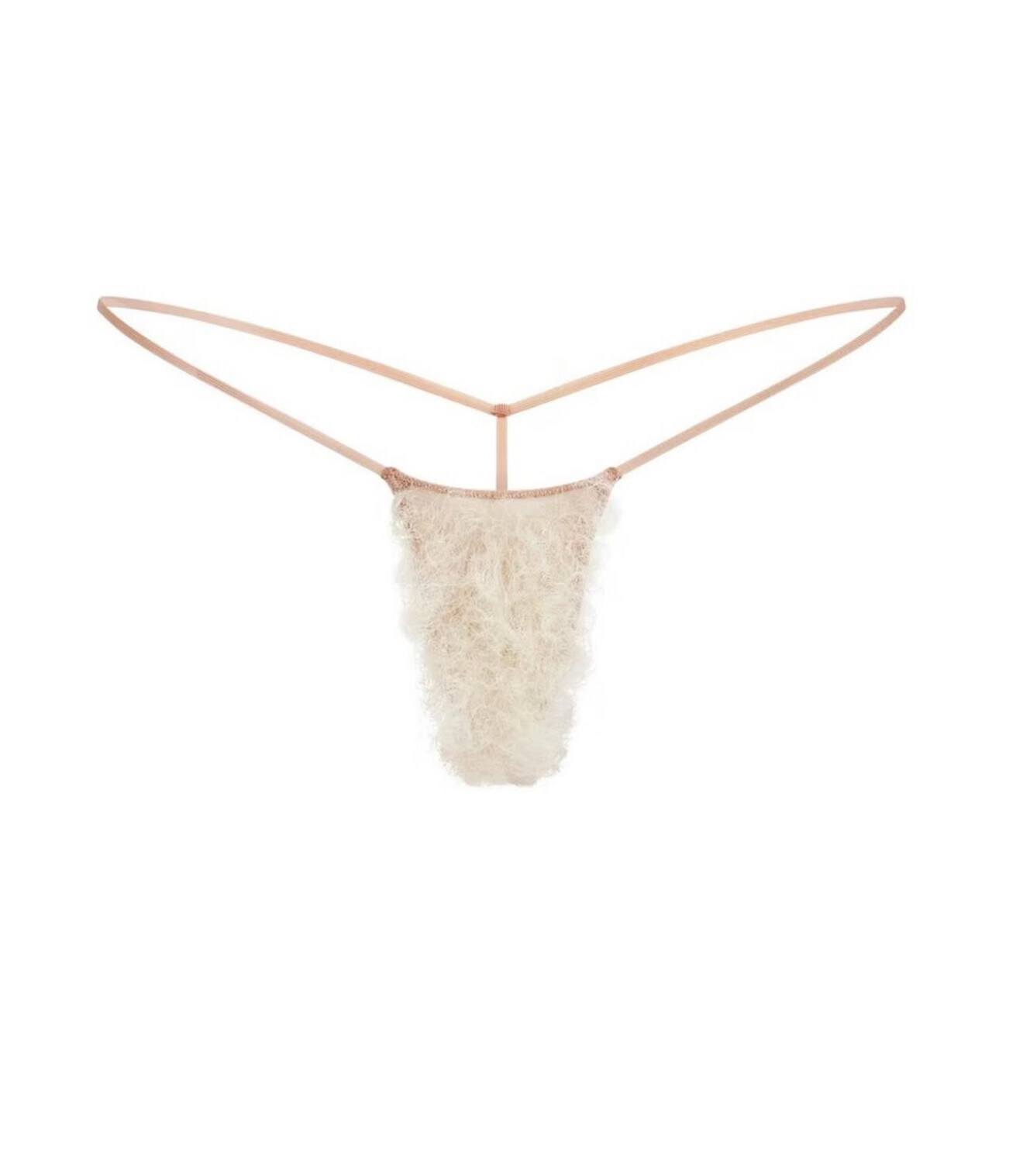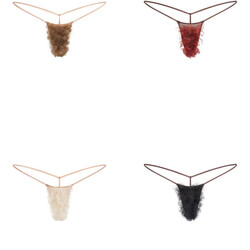 Белье оказалось декорировано искусственными волосами самых разных оттенков и текстур. При этом, команда бренда обратила внимание на то, что трусикам нужен щадящий уход, чтобы они дольше оставались эффектными.