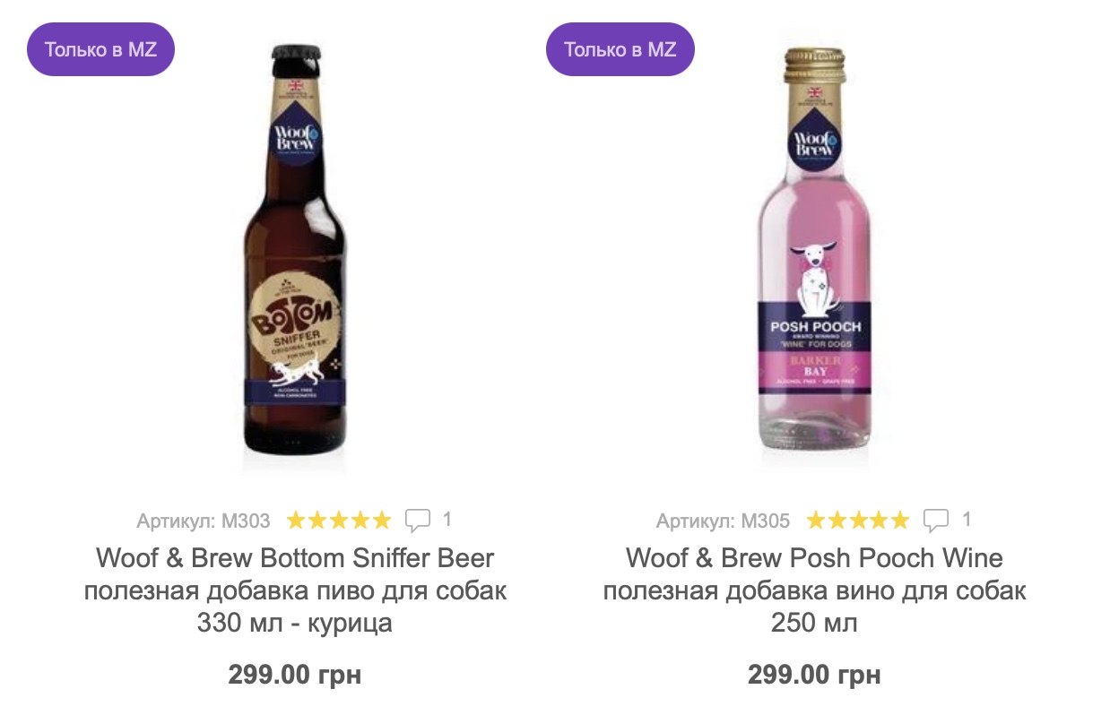 В известной сети зоомагазинов Украины в продаже появилось пиво и вино для собак от компании Woof & Brew.