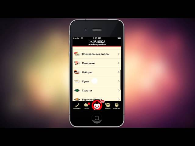 Есть кнопка «поделиться». При клике на страничке соц.сети появляется сообщение, например: «Вот это я сейчас наемся! Зеленый дракон, рис паровой, шоколадный ролл, Rich зеленое яблоко 1л. Все это через iPhone суши-бар УКУШУКА!».