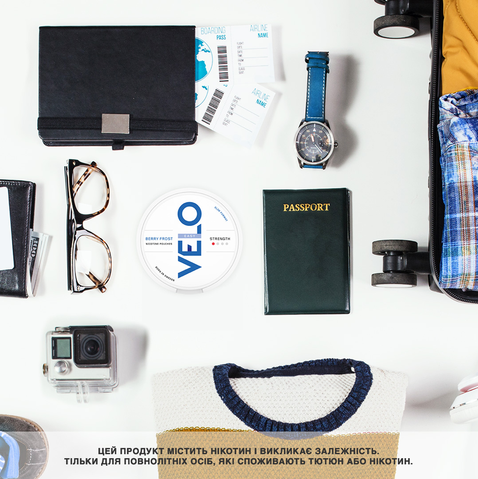 - VELO не містить тютюну, а значить при використанні немає диму і попелу.