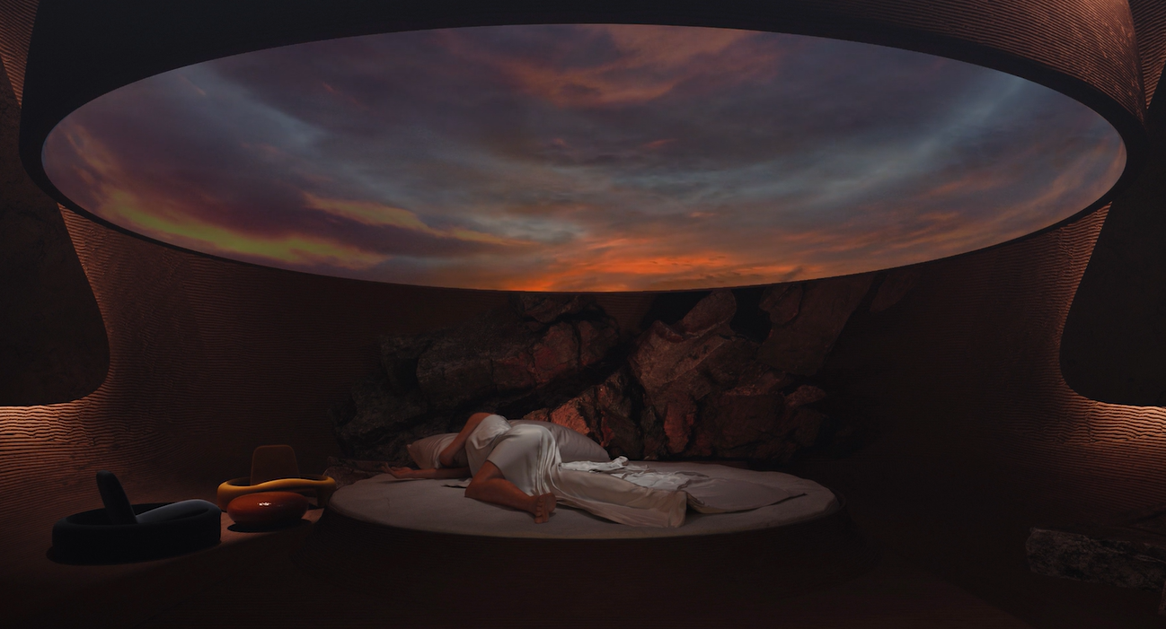 Спальные комнаты рассчитаны на одного или двух человек. В них минимум деталей интерьера, а на потолке есть экран, куда можно транслировать ночное небо, пейзажи, облака или сериал.