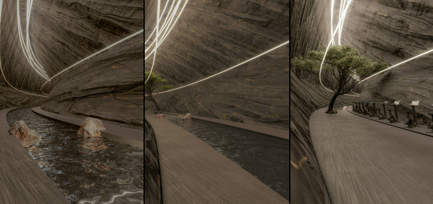 Вдоль всего этого коридора - растения и деревья, превращающие углекислый газ и воду в кислород. Так, будет казаться, что просто гуляешь под открытым небом.