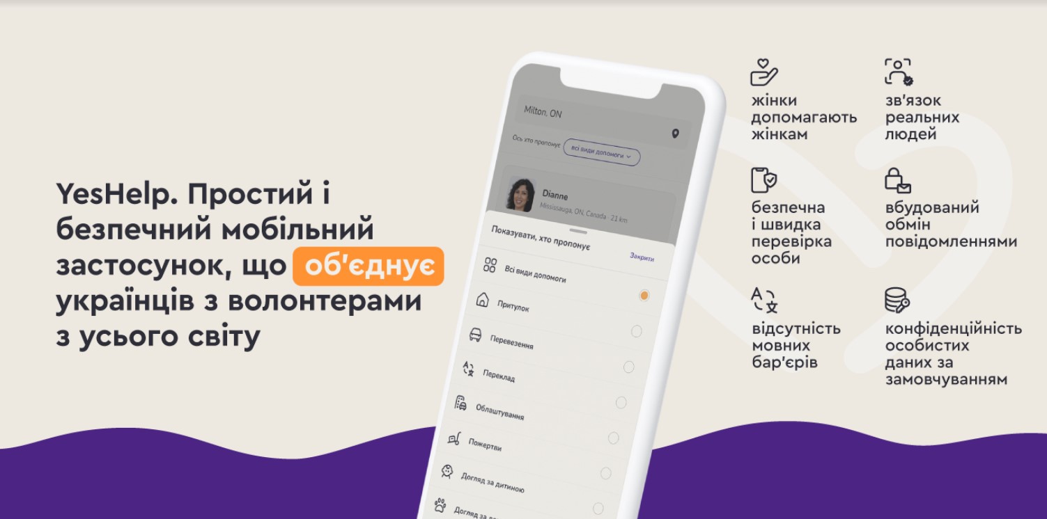 Канадские стартаперы презентовали некоммерческое уникальное приложение под названием YesHelp, которое предназначено для связи украинских беженцев с волонтерами из более чем 60 стран мира. В частности сервис помогает женщинам, так как именно большинство украинок с детьми выехали из страны в поисках безопасного убежища из-за полномасштабного вооруженного вторжения России в Украину.