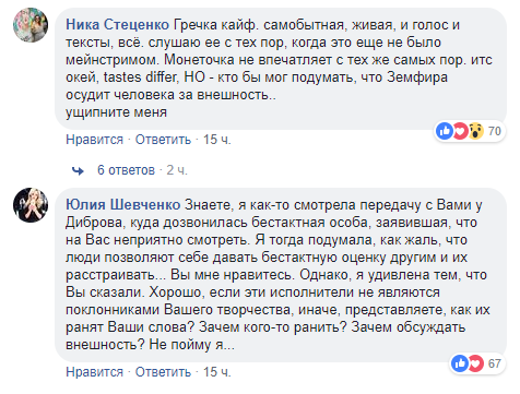 Мнения в комментариях, кто-то поддержал Зефиру и согласися с её мнением, кто-то упрекнул певицу чрезмерном критиканстве и вниманию ко внешности, которая не должна влиять на впечатление от музыканта.