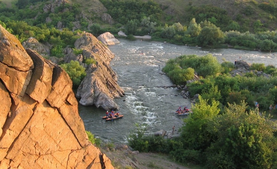 Сначала предлагаем побывать у каскада порогов, который образован между скал Южного Буга. Пейзажи тут действительно впечатляют. Мелководный Буг отлично подходит для рафтинга, стоит такое развлечение от 700 грн за человека. Если вы не экстремал, то прогулки вдоль воды и фотопаузы будет вполне достаточно.