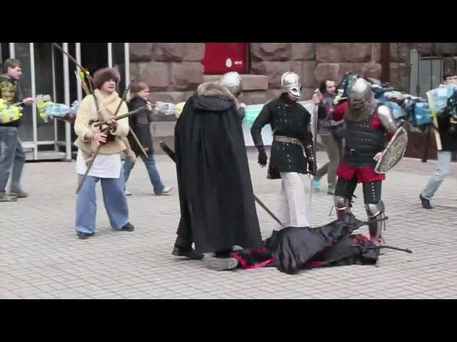 Ми планували привезти пакети зі сміттям із кожного району Києва. З нами були Чапкіс та письменниця і співачка Ірена Карпа. Коли міліція побачила сміття, то була спроба перешкодити акції. Це все зафіксували телевізійні камери. Ну а ми, до того ж, ще й зняли відео для свого рекламного ролика.