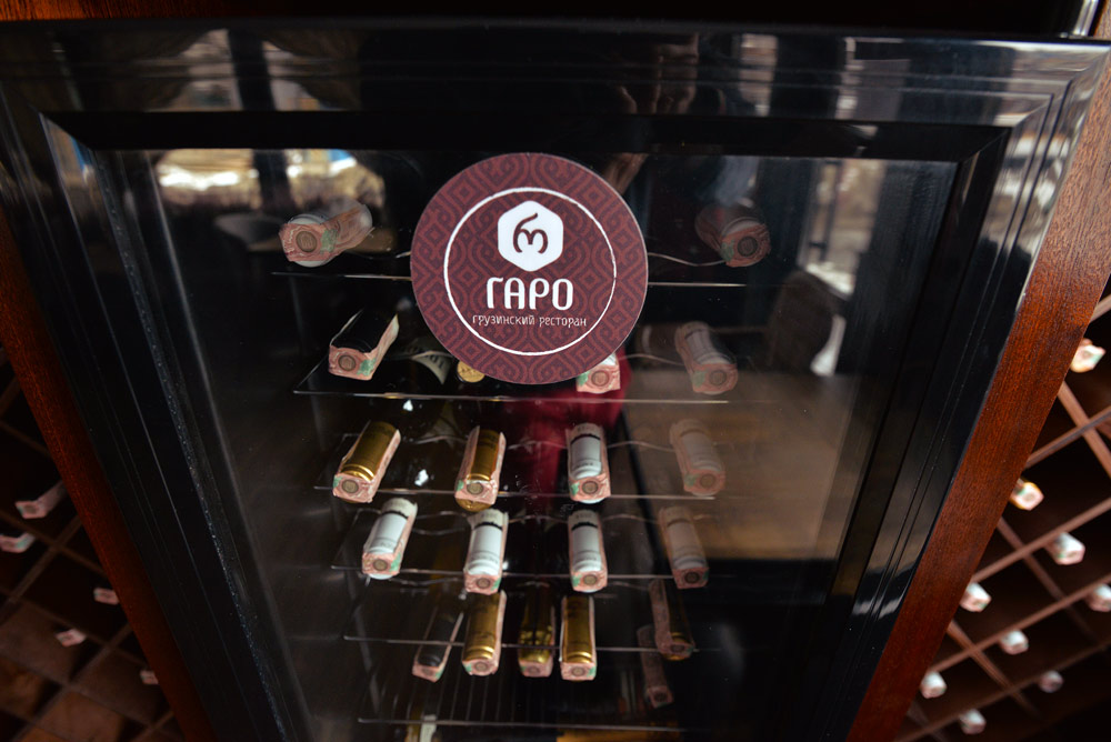 Картины специально для «Гаро» рисовали художники с Западной Украины. Мы выбирали картины, которые должны не просто дополнять интерьер, но и вызывать эмоцию. Подумали, что раз это винный зал, то иллюстрации должны быть с элементами застолья и праздника.