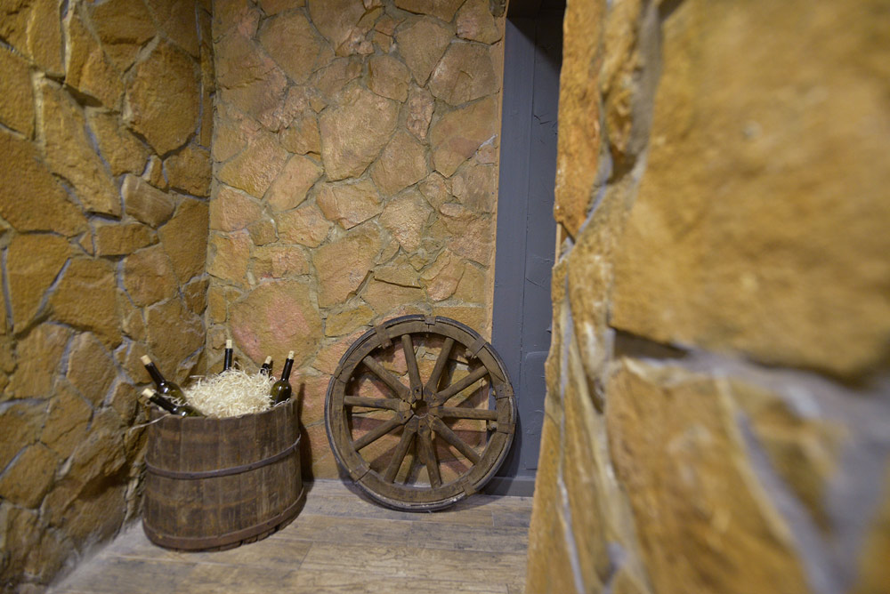 В ресторане два зала. Первый, «винный», находится в подвальном помещении. В зале 5 столов – четыре из которых отлично подойдут для компании из 4-6 человек и один – для романтического свидания или встречи двух друзей.