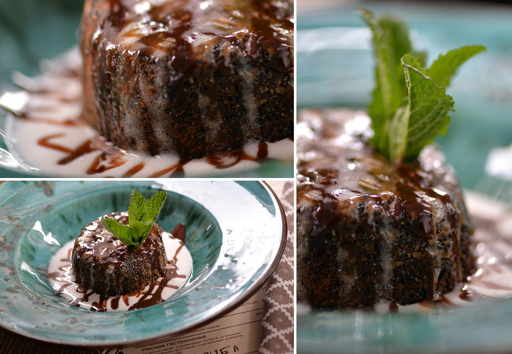 Маковый пирог (воздушный пирог без муки с ванильным, шоколадным и карамельным соусами) – 65 грн