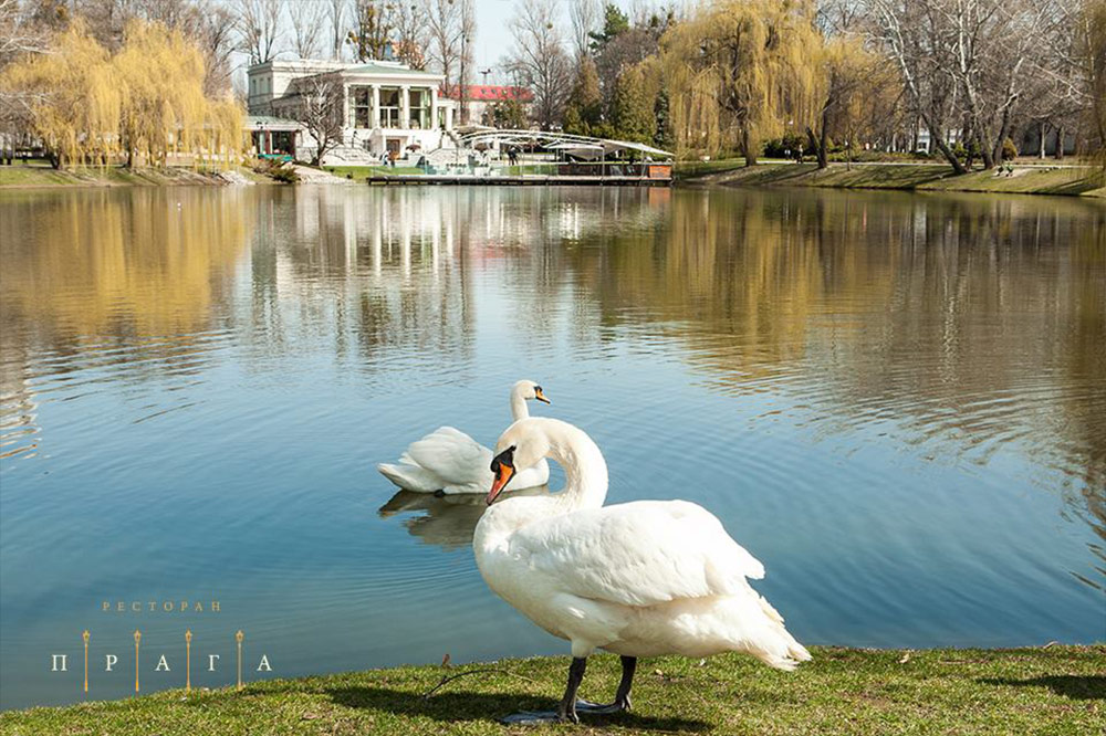 Летние террасы ресторана Прага открыли свои двери для любимых и всегда желанных гостей. Здесь хочется расположиться в мягком кресле, наслаждаясь спокойствием и красотой парка с озером с белыми и черными лебедями.