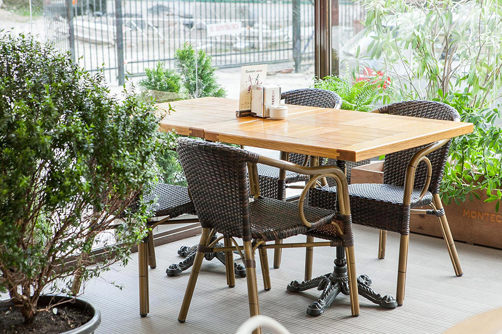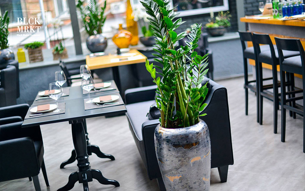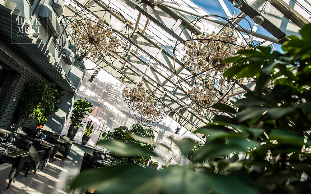Терраса в Black Market залита светом и полна живых растений.