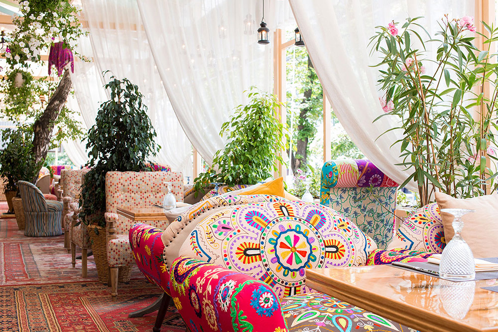 В самом сердце Киева вас ждет красочная терраса ресторана ESHAK. Большая, наполненная солнечным светом, зеленью и цветами, эта веранда станет одним из ваших любимых мест. Здесь приятно начинать день за завтраком, встречать закат вкусным ужином в компании друзей или просто наслаждаться дымным кальяном Khalil Mamoon,утонув в мягком кресле под сеты DJ и танец живота.