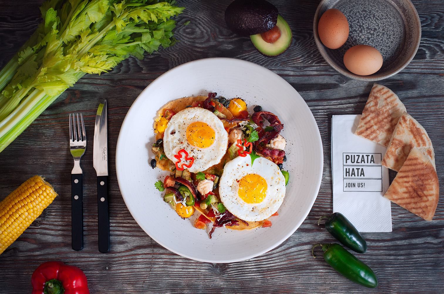 В меню салатов для ланча есть салат с куриным филе, томатами и кешью; легкий салат со шпинатом, киноа и яйцом-пашот, салат с тыквой, буряком и фетой; хумус с питой и овощами. Основное блюдо подается в зависимости от дня недели: пшеничная каша с беконом, куриные крылышки с картофельным пюре, киш, паста или рагу.