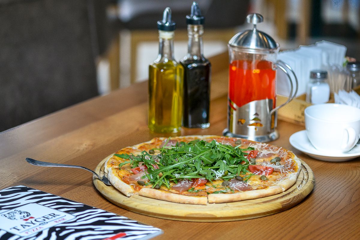 Главная составляющая меню Tayger Pizza Bar – это пицца. Есть классические виды пиццы, к примеру, «Четыре сыра» или «Маргарита», но большая часть готовится по оригинальным авторским рецептам. Из новинок в заведении советуют обратить внимание на острую пиццу «Фахитос» с моцареллой, халуми, перцем, фасолью, ростбифом и кинзой или «Прошутто буратта» с моцареллой, буррата, прошутто, каперсами, черри, пармезаном и рукколой.