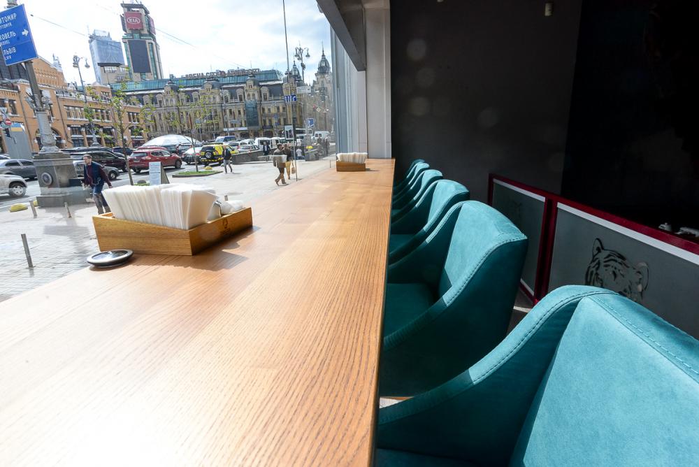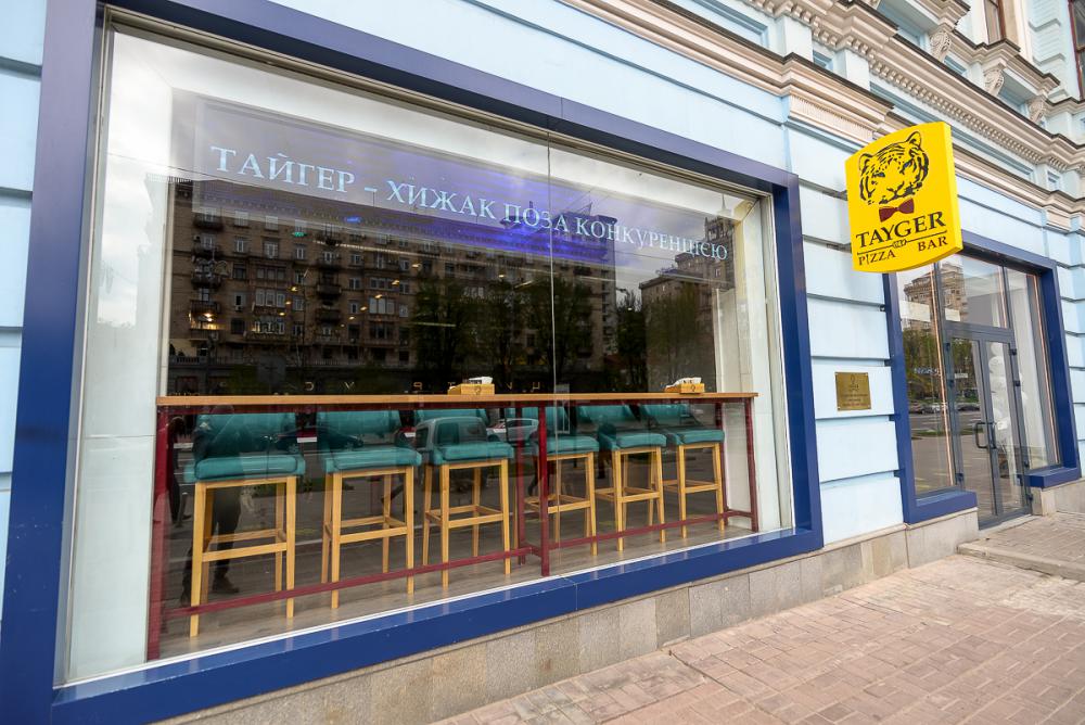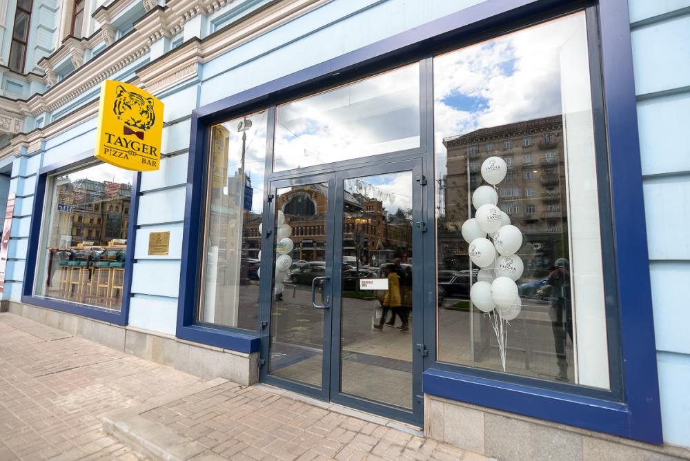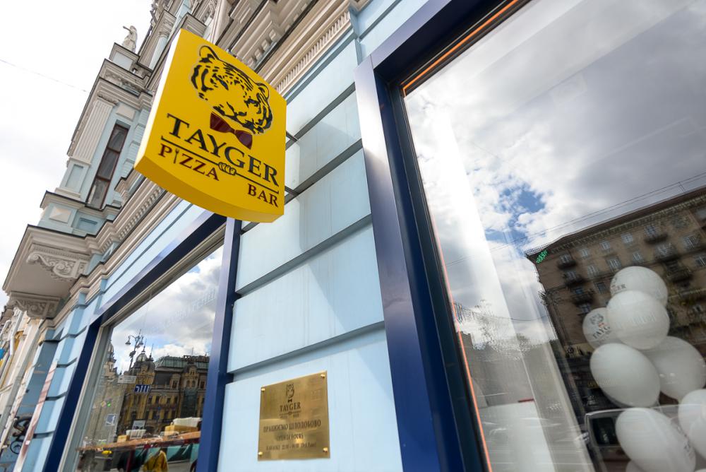 Пиццерия расположилась в историческом здании на Крещатике, около Бессарабской площади. Что важно, в заведении подумали о ценности сооружения и выполнили фасад ресторана в стилистике здания – без громоздких вывесок и в одной цветовой палитре. Узнать Tayger можно по панорамным окнам и небольшой боковой вывеске с фирменным лого.
