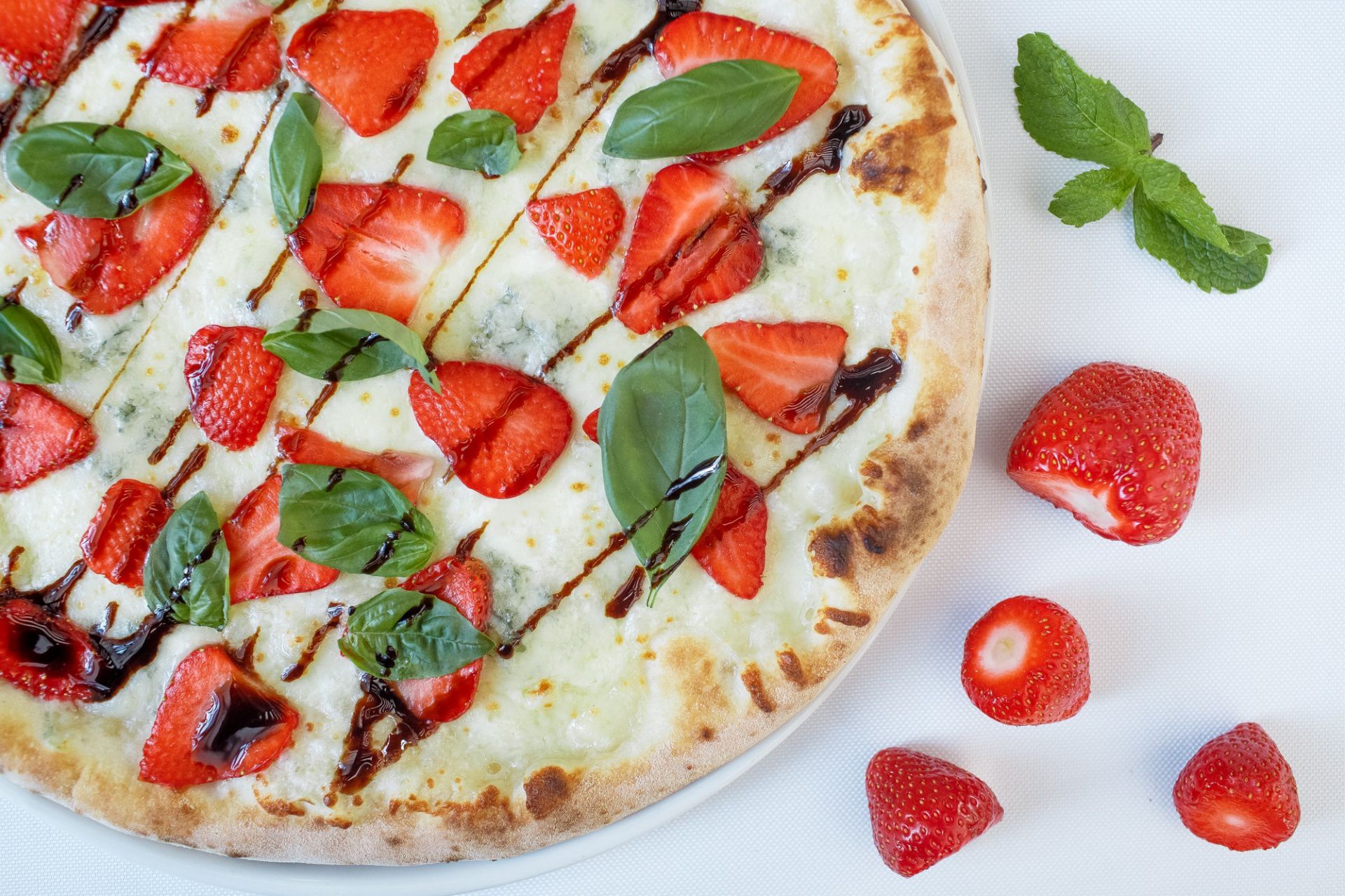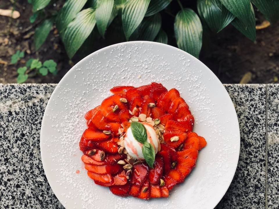 В ресторане итальянской кухни ввели несколько блюд с клубникой. В том числе: белая пицца, страчателла с клубникой, салат со свежей клубникой, авокадо и козьим сыром и клубничный тарт.