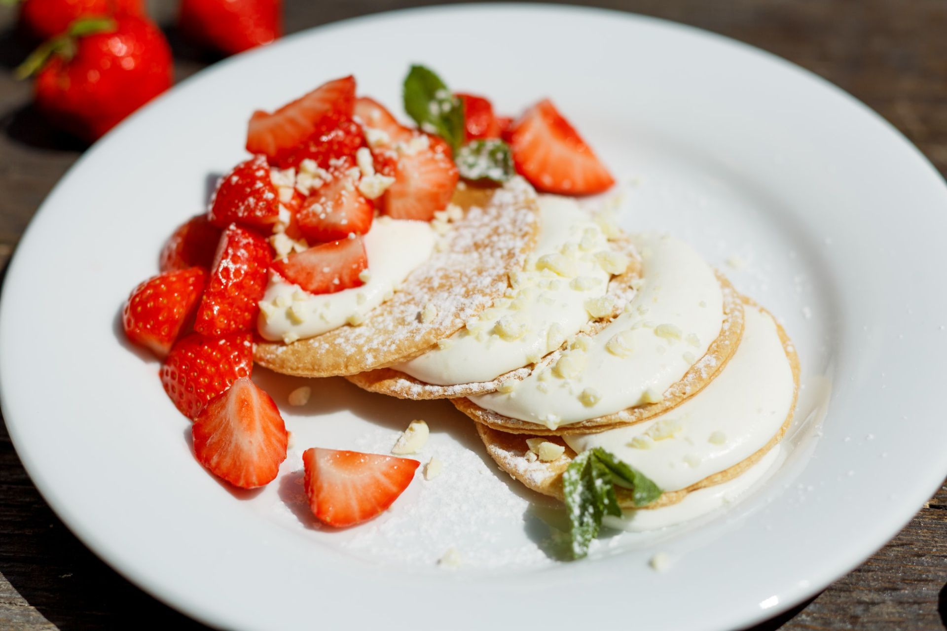 Ну, и, поскольку Panna Pasticceria специализируется на десертах, в клубничном меню тоже появилось много новинок: клубничный тирамису (169 грн), кроста ди Фраголе из песочного теста, крема маскарпоне и клубники (75 грн), воздушный мусс верин (65 грн) и традиционный итальянский десерт семифредо (139 грн).