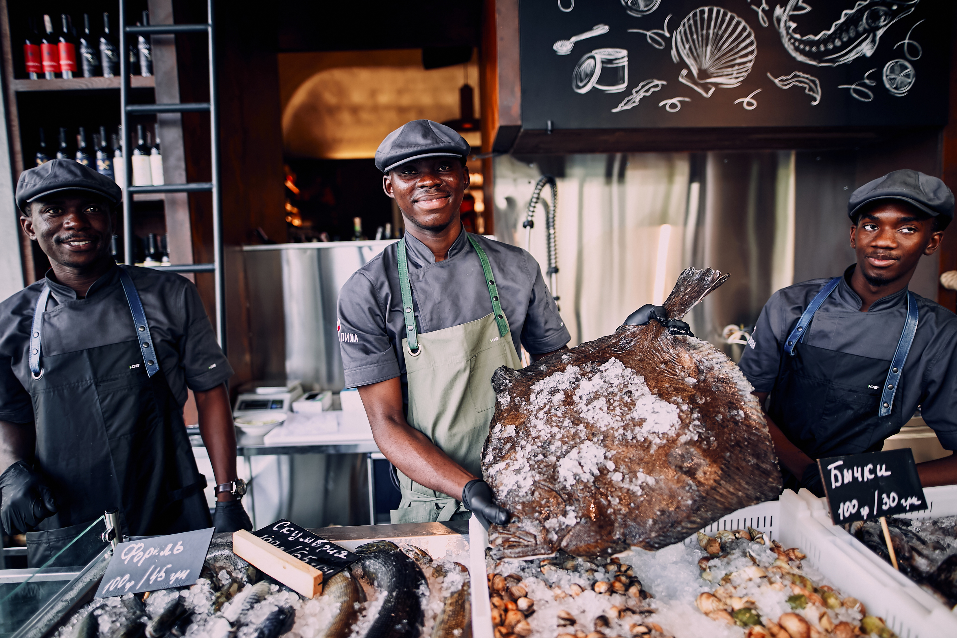 В меню рестораны есть свежая рыба и морепродукты, суши-бар, щучьи котлеты, паста с лобстером. Кухню все так же возглавляет концепт-шеф Bulldozer Group Ukraine Сергей Юрчишин.