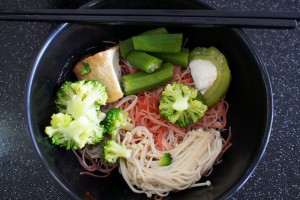 - Бобовая лапша и овощи в соусе терияки (большая порция) – 89 грн